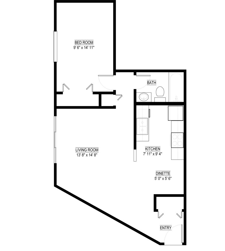 1 Bed, 1 Bath, 680 sq ftModel Gallery