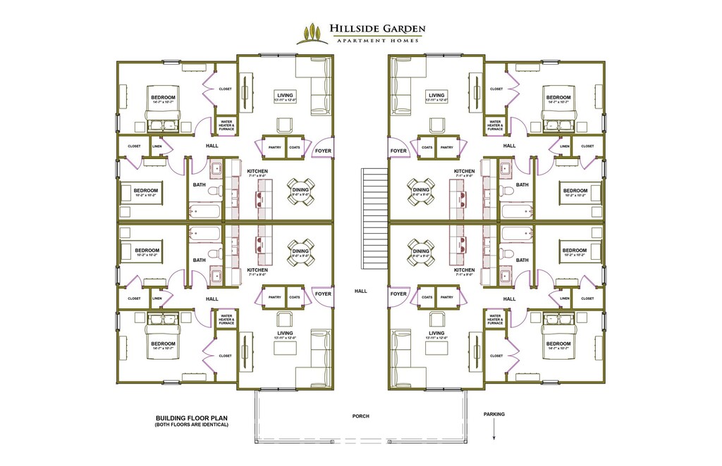 1398 Hillside Garden - Floorplan 12 2BR/1.0BA