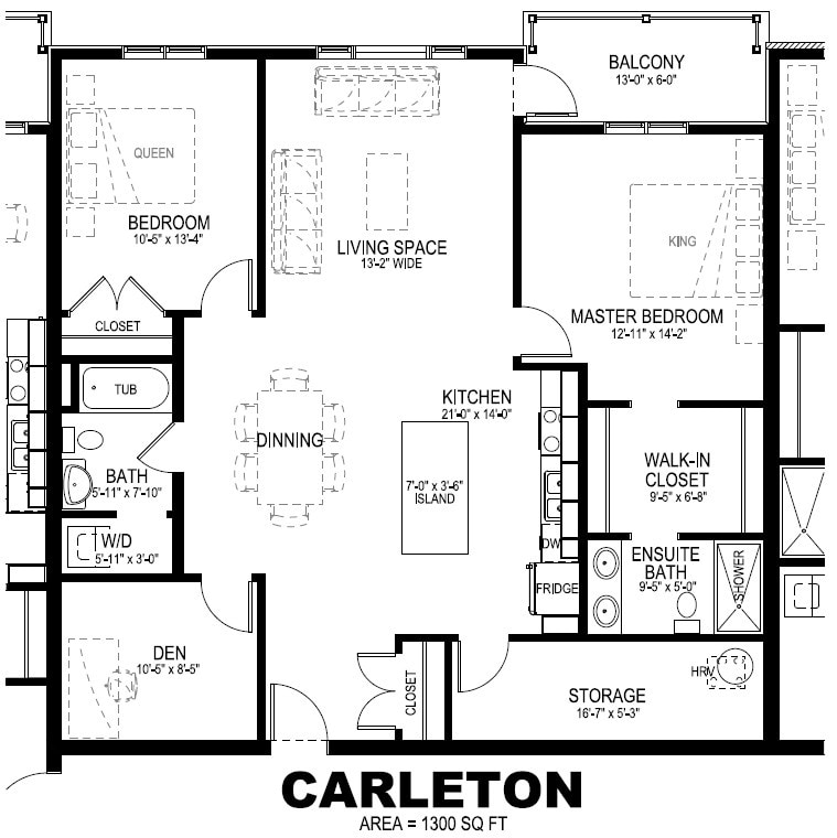 Apartment Model: Carlton + Den2 Bedroom, 2 Bath, from 1300 sq ftUnavailableCarlton + Den - Floorplan 1 Odell + Den
