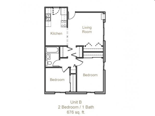 2 Beds, 1 Bath, 676 sq ftAvailability Details