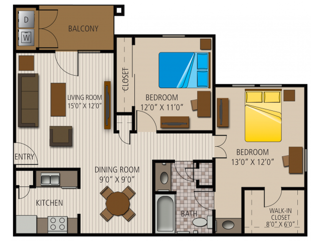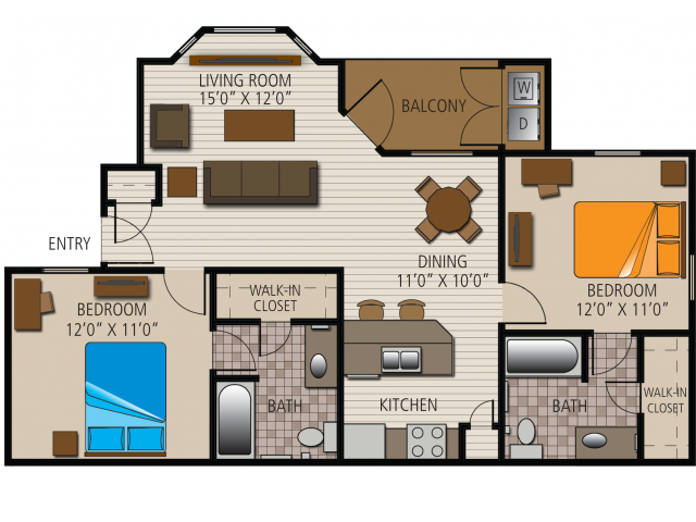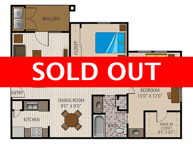 1 Bed, 1 Bath, 755 sq ftAvailable NowLargest 1 BedroomThis is the largest 1 Bedroom at this PropertyModel Gallery