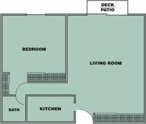 1 Bedroom/ 1 Bath Bungalow - Floorplan 1 1 Bedroom/ 1 Bath w/ Balcony