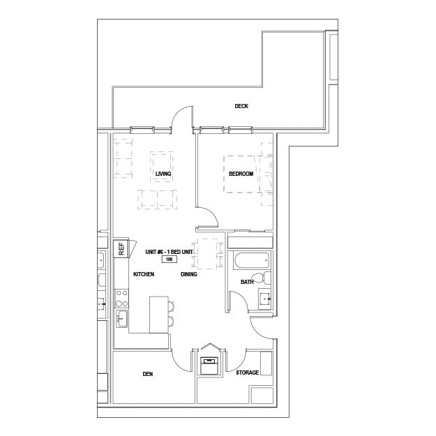 1 BR 1 BA - Floorplan 1 1 BR+DEN 1 BA