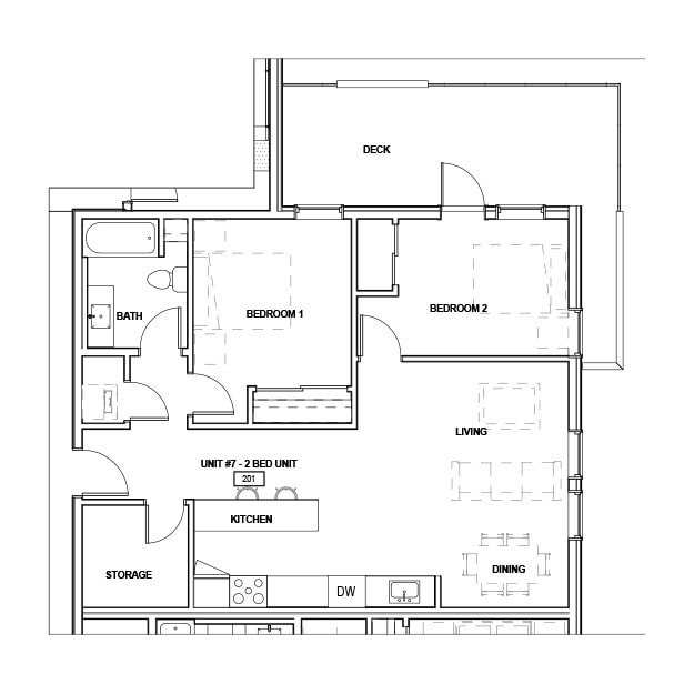2 BR 1 BA - Floorplan 1 2 BR 2 BA