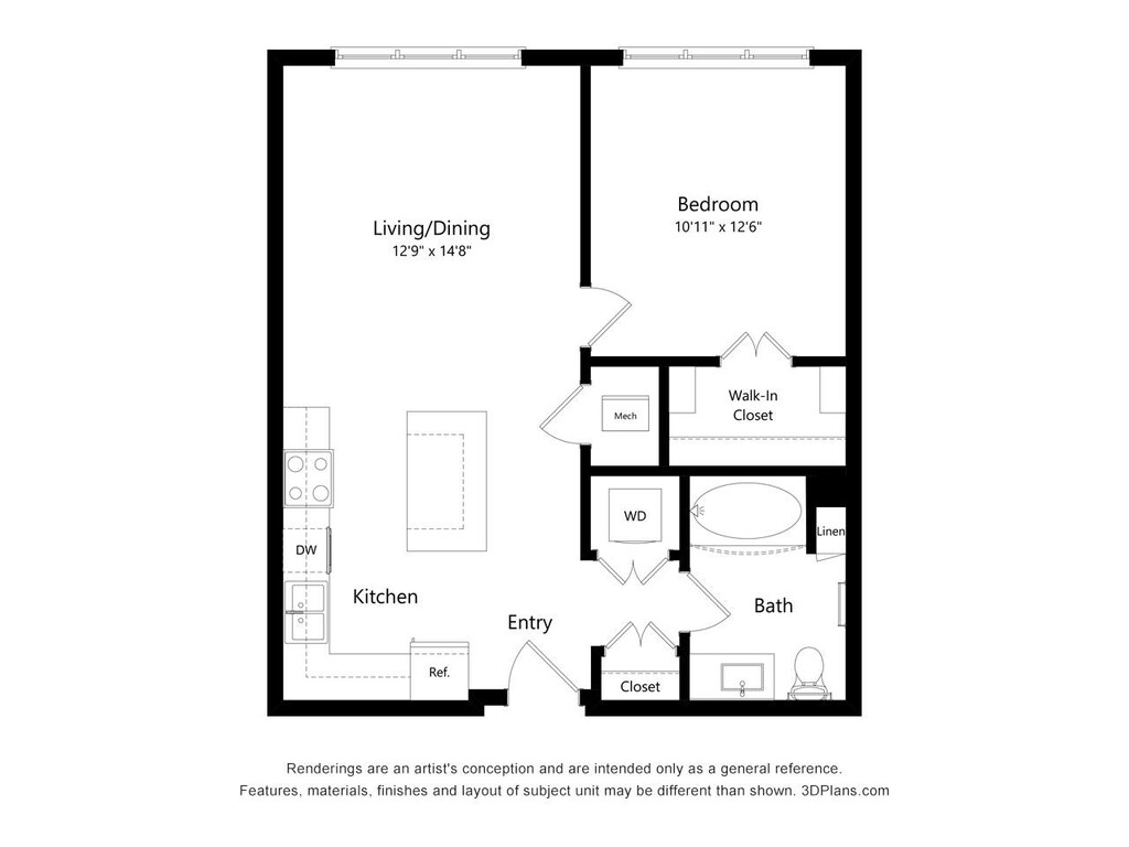 One Bedroom - B - Floorplan 2 Apartment Unit: 115Apartment Model: One Bedroom - B1 Bedroom, 1 Bath, 723 sq ftAvailable December 1, 2025One Bedroom - A