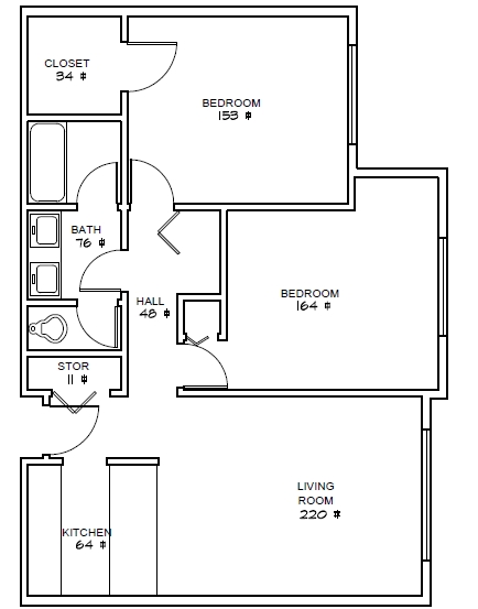 2 Beds, 1 Bath, 700 sq ftAvailability Details