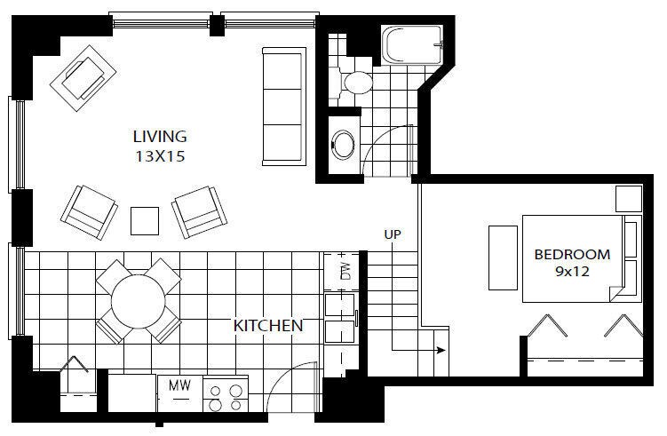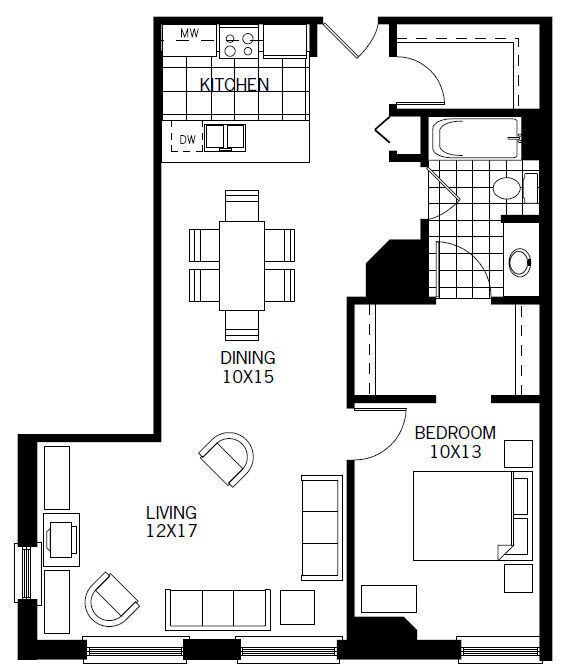 1 Bed, 1 Bath, 612 sq ftModel Gallery