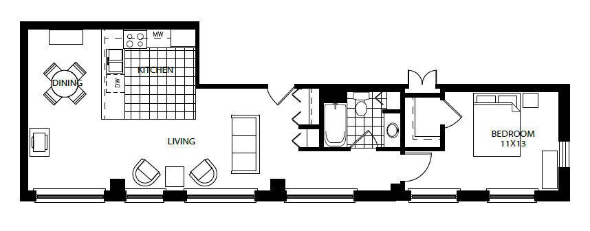 1 Bed, 1 Bath, 571 sq ftModel Gallery
