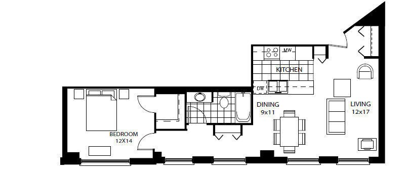 Apartment Model: A1$1,2221 Bedroom, 1 Bath, 571 sq ftUnavailable![]()