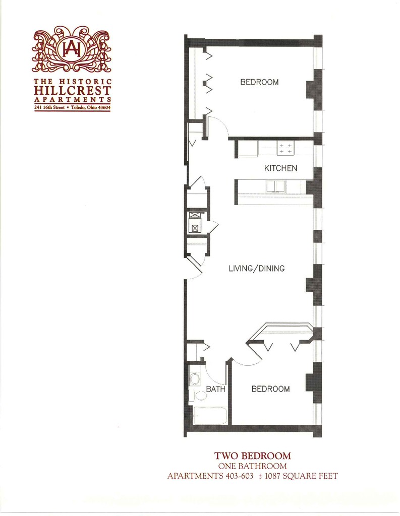 Welcome to the Historic Hillcrest Apartments! Enjoy city living and the comfort of modern technology with old world charm in this community. Our spacious one, two, and three bedroom apartment homes are thoughtfully designed with your comfort in mind and are appointed with the premium materials and finishes you deserve. In addition to our great floor plans and maintenance-free living, our community has the amenities you would expect and much more. For your pleasure, our community features a fitness studio, an on-site laundry room, select units with washer/dryer hook-ups, an indoor heated parking garage, community room, and the largest green space of all Downtown Toledo apartments. Enjoy the benefits of community living with the added perks of living steps away from parks, restaurants, entertainment, and nightlife. The Historic Hillcrest is ideally situated to give you easy access to the best of what the area has to offer. We are located a short distance from the Mud Hens Baseball field, the Huntington Center, Hollywood Casino, and the expressway. Here at The Historic Hillcrest Apartments, we understand that your pet is a special part of your family. We are pet friendly and look forward to making your furry friend a part of our community! Call us today to make an appointment to see for yourself why the Historic Hillcrest should be your new home. We look forward to hearing from you!