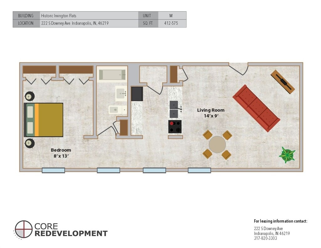 Studio, 1 Bath, 412 sq ftAvailability Details