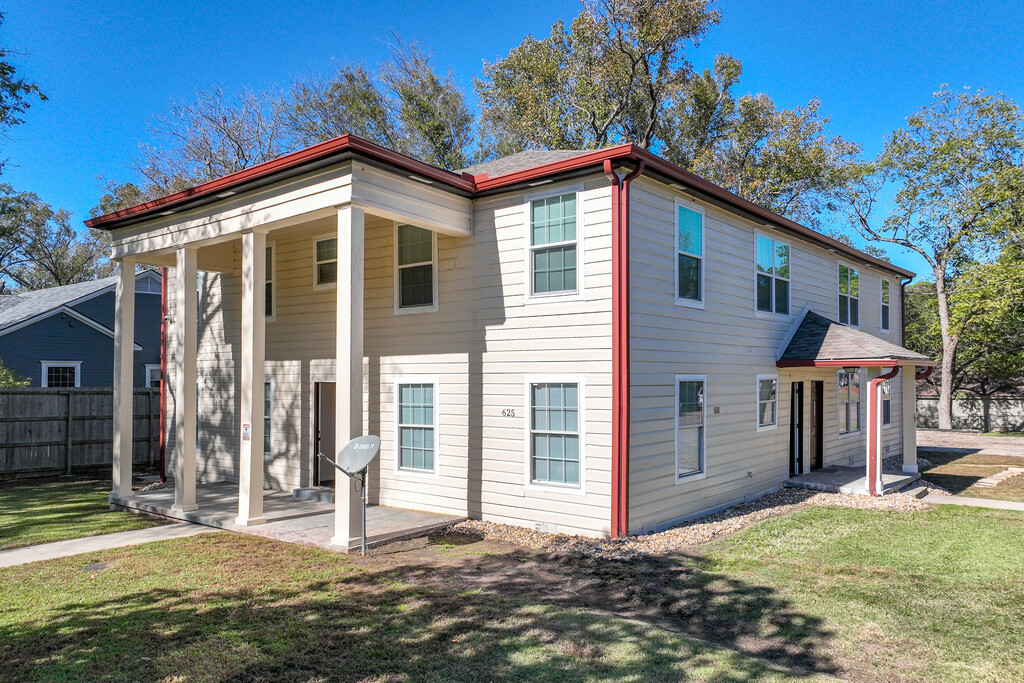 Experience the charm of this beautifully restored historic property, conveniently located in the historic Mobberly neighborhood of Longview. It's a unique 4-unit property in a single-family home neighborhood and the corner lot offers generous yard space. The two first floor units have vinyl plank flooring and the two second floor units have carpets in all dry areas and vinyl flooring in the wet areas. Each unit has 2-bedrooms, 1-bathroom, separate dining area, spacious closets, and expansive living areas of approximately 1200 sq. ft. A shared laundry facility is on-site. All units have been fully renovated including new appliances and new plumbing. Rent includes water and trash services, with tenants pay for electric and gas. The monthly rent for the 1st floor units ranges from $1150 to $1200, with a $1150-$1200 security deposit. Second floor units rent at $1100 with a $1100 security deposit. Deposit can be paid in 3 installments. Each unit has 3 energy efficient combo heating and AC units that cool the entire apartment. Key nearby locations include Le Tourneau University (1.7 miles), the Komatsu plant (2.3 miles), and the downtown art district.