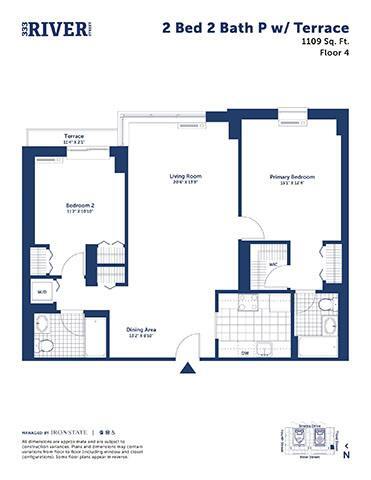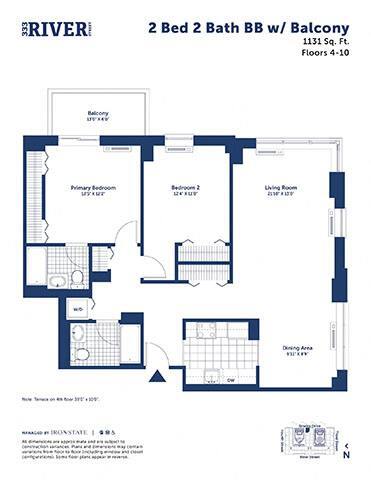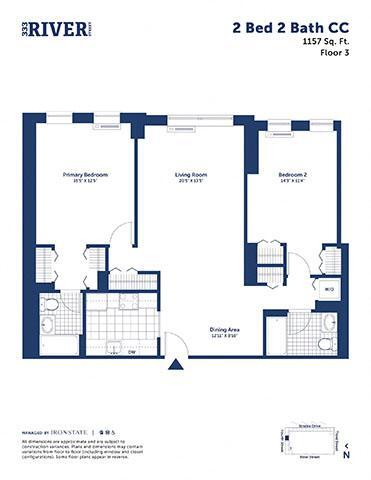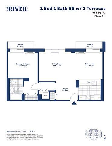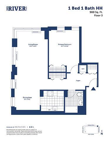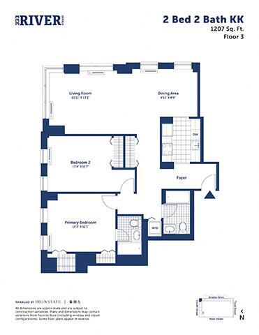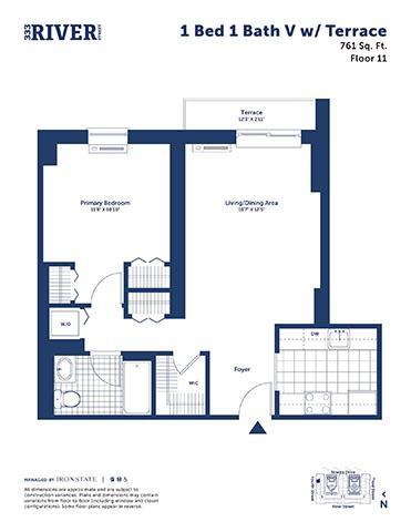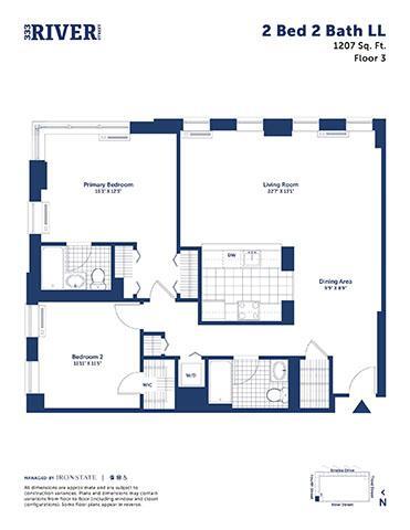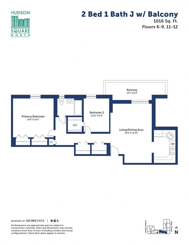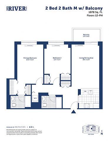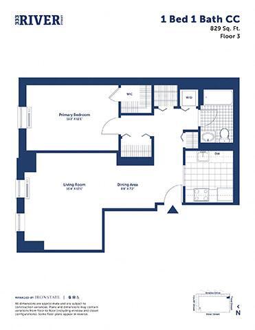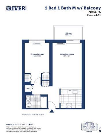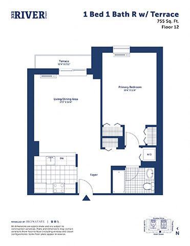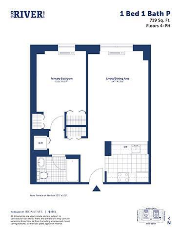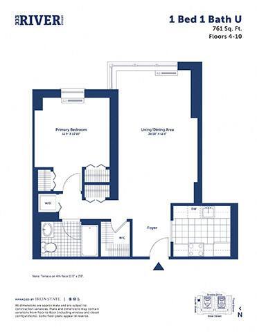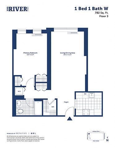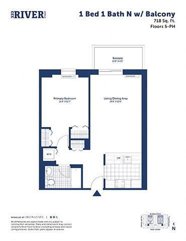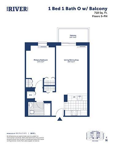 333 River Street - 1 Bed 1 Bath N with Balcony - Floorplan 1 333 River Street - 1 Bed 1 Bath P