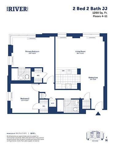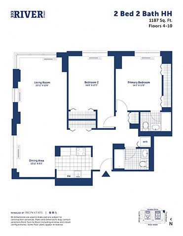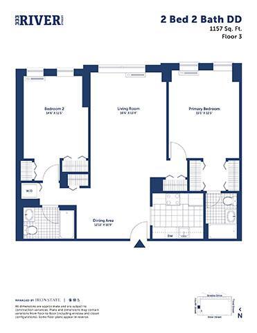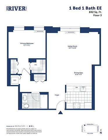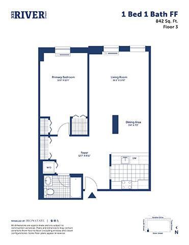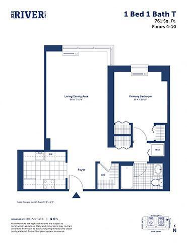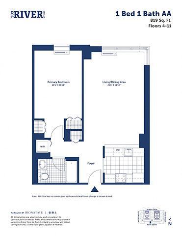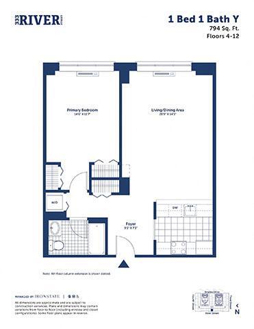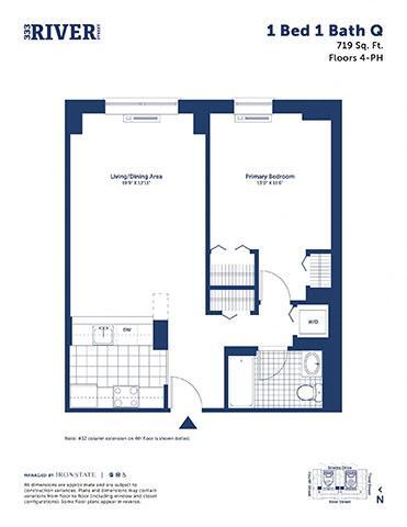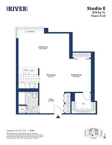 333 River Street - Studio D - Floorplan 1 1 Bedroom