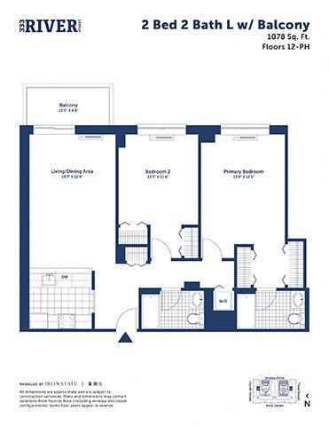 333 River Street - 1 Bed 1 Bath L with Balcony - Floorplan 1 333 River Street - 1 Bed 1 Bath N with Balcony