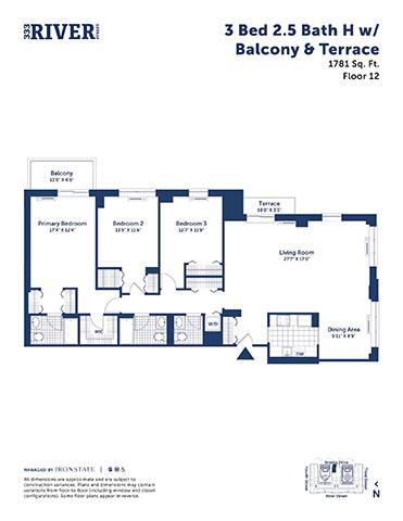 Apartment Model: 333 River Street - 1 Bed 1 Bath X with BalconyFrom $4,5751 Bedroom, 1 Bath, 782 sq ftAvailable December 22, 2025![]()