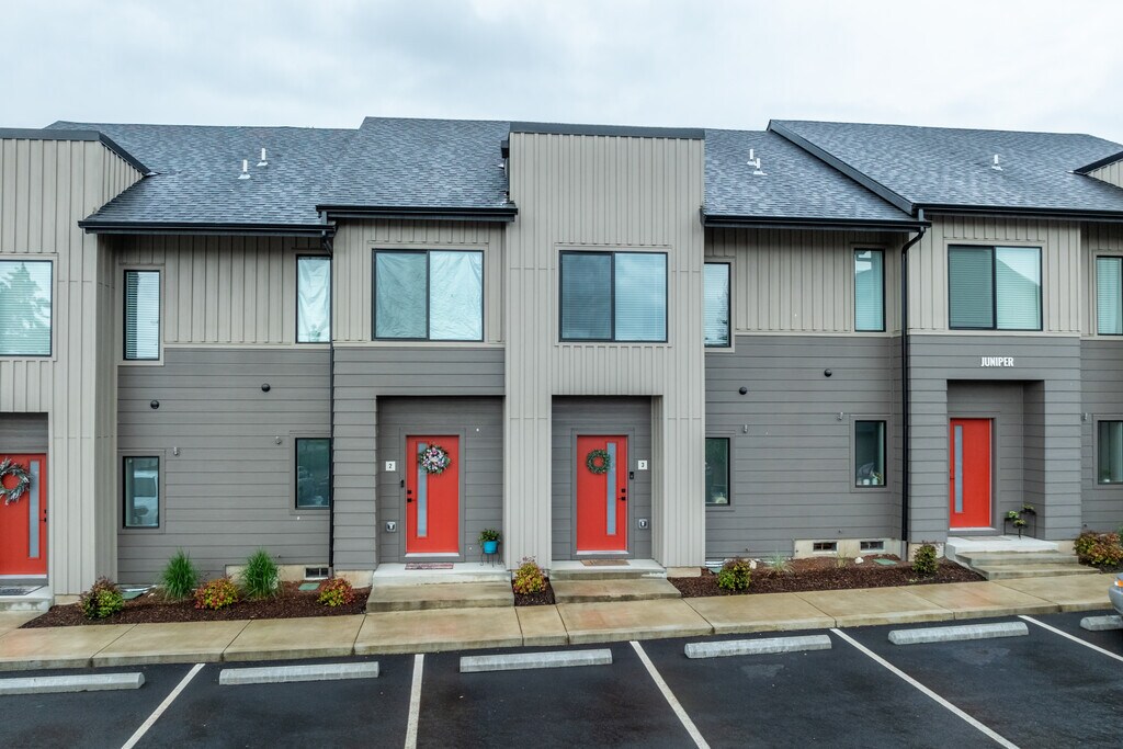 Make the Holbrook Townhomes YOUR new home! These 2 bedroom, 1-1/2 bath townhouses feature high 9 foot ceilings, an open and spacious floorplan with 970 sf of living space and a double vanity/Jack & Jill style bathroom. These townhomes are thoughtfully designed with comfort and contemporary elegance in mind. Double-wall construction and all soft-close cabinet doors and drawers adds extra peace and quiet for you and your neighbors. Flooring is easy-to-clean luxury vinyl plank downstairs, and carpeted stairs and bedrooms upstairs. Downstairs is air-conditioned with reversible ceiling fans in both upstairs bedrooms. In the kitchen and baths you'll see beautiful polished quartz countertops with undermount sinks. Kitchen appliances are stainless steel including refrigerator, dishwasher, oven/cooktop, microwave, disposal, washer and dryer in each apartment and a rear private patio off the dining area. There will also be some Level 2 charging stations for electric vehicles. Holbrook Townhomes is located 5-10 minutes drive to I-5, 8 miles to Cottage Grove and 12 to Eugene. Creswell elementary school is 7 blocks away, middle school 2.5 blocks and high school 1.1 miles. Our construction is now complete, so every apartment is available for immediate occupancy. Rents from $1465 to $1530. Application fees are $45 per adult, the security deposit is $2000 and we are offering fixed term leases. Call Ron Roggensack, the site manager to schedule a viewing today!