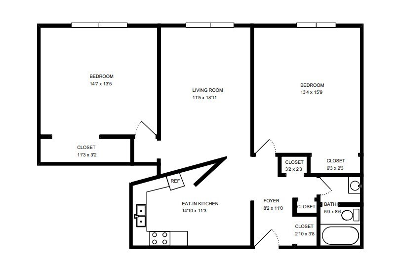 Holiday Gardens - Two Bedroom, One Bathroom - B - Floorplan 1 Apartment Unit: 1315-17Apartment Model: Holiday Gardens - Two Bedroom, One Bathroom - B2 Bedroom, 1 Bath, 950 sq ftAvailable November 15, 2025HOLIDAY GARDENS- TWO BEDROOM ONE BATH- E