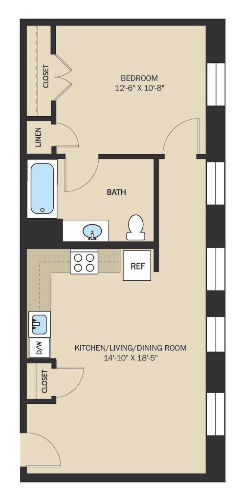 Studio, 1 Bath, 494 sq ftPlus FeesAvailable NowAvailability Details