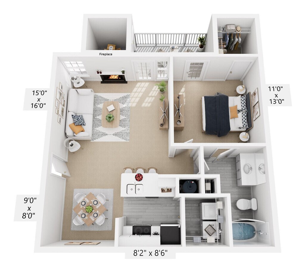 1 Bed, 1 Bath, 872 sq ftAvailable NowModel Gallery