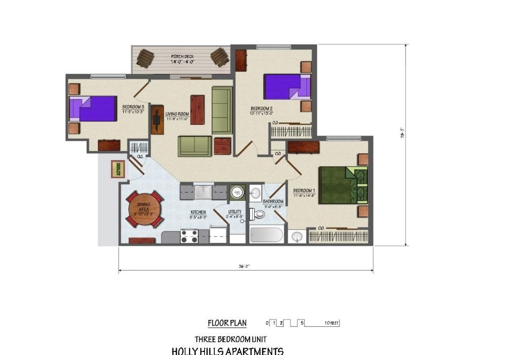 Apartment Model: 3 bed3 Bedroom, 1 Bath, 1005 sq ftUnavailable![]()