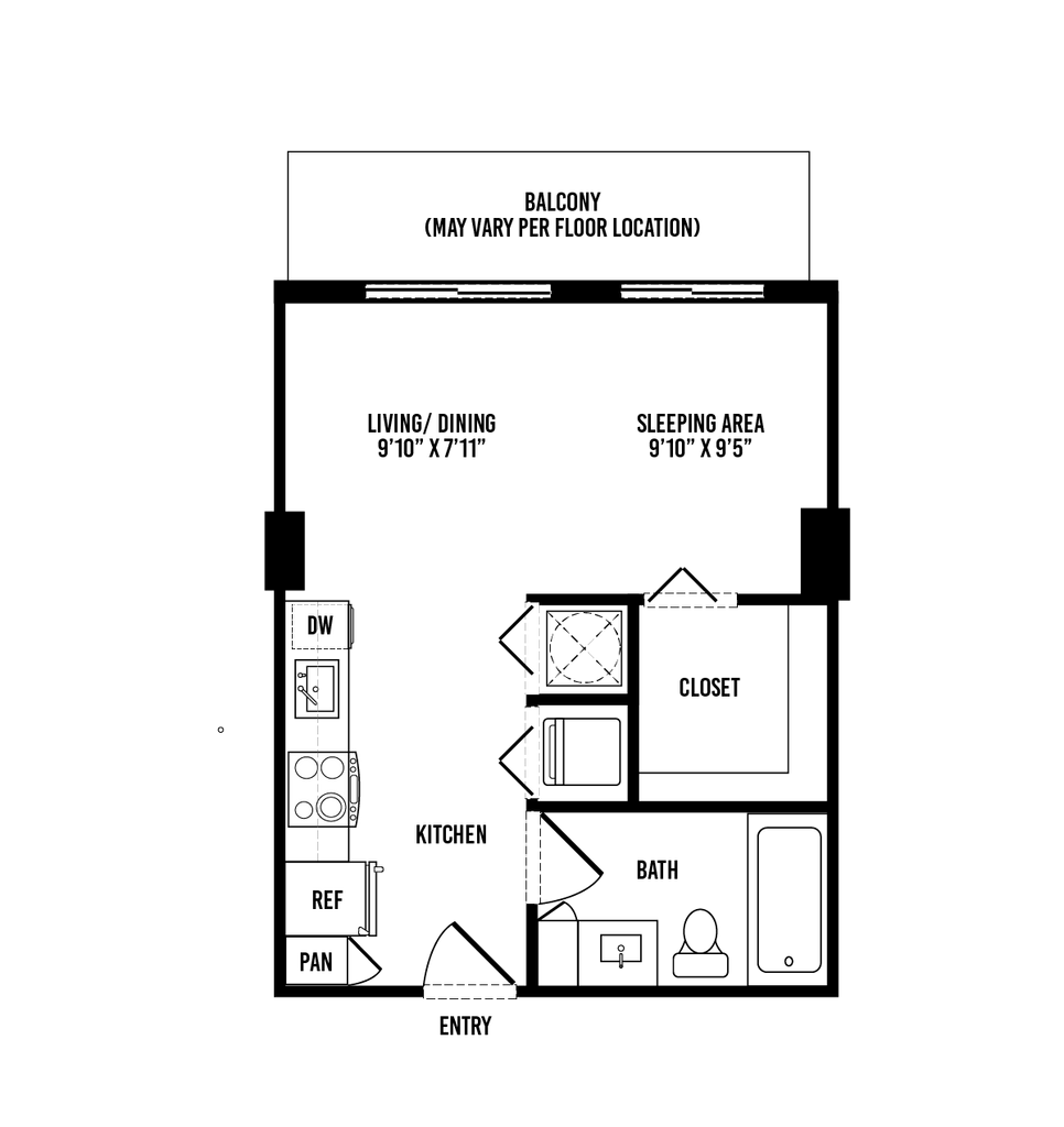 S4 - Floorplan 1 Apartment Unit: 806Apartment Model: S4$2,100Studio, 1 Bath, 502 sq ftAvailable Now![]()