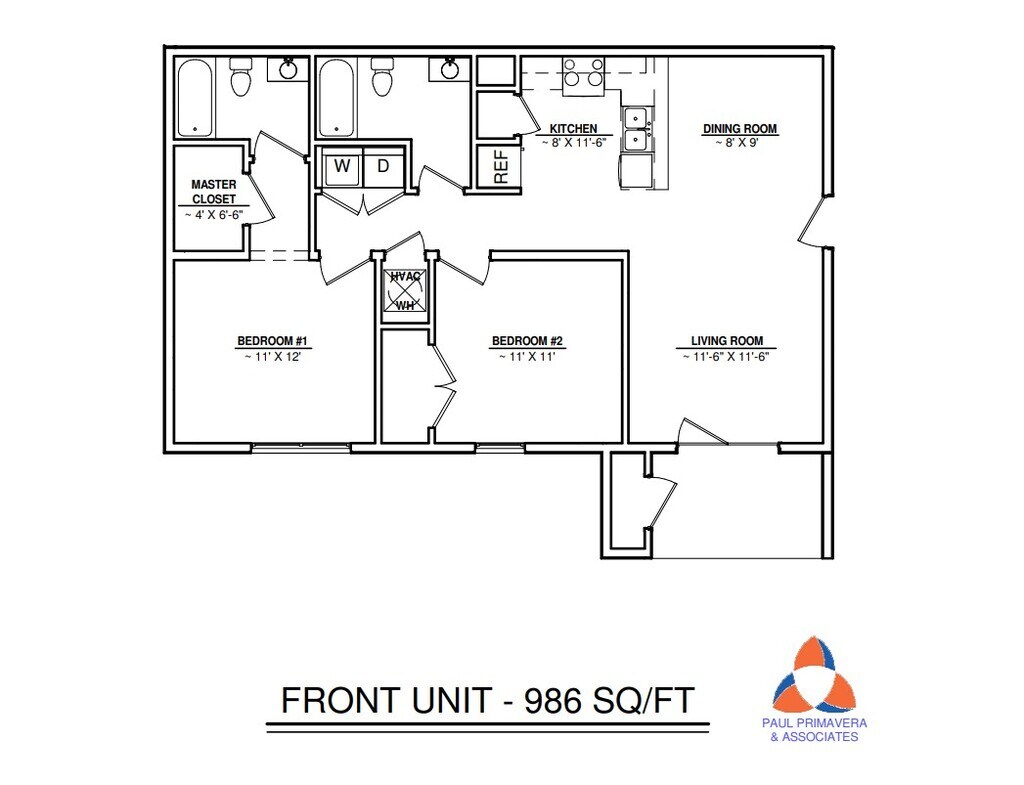 2Bedroom/2Bathroom 986 sqft (1st or 2nd floor)