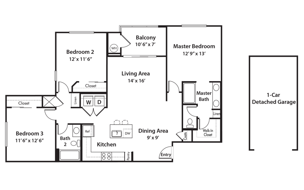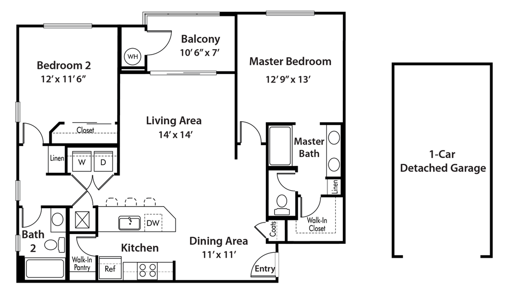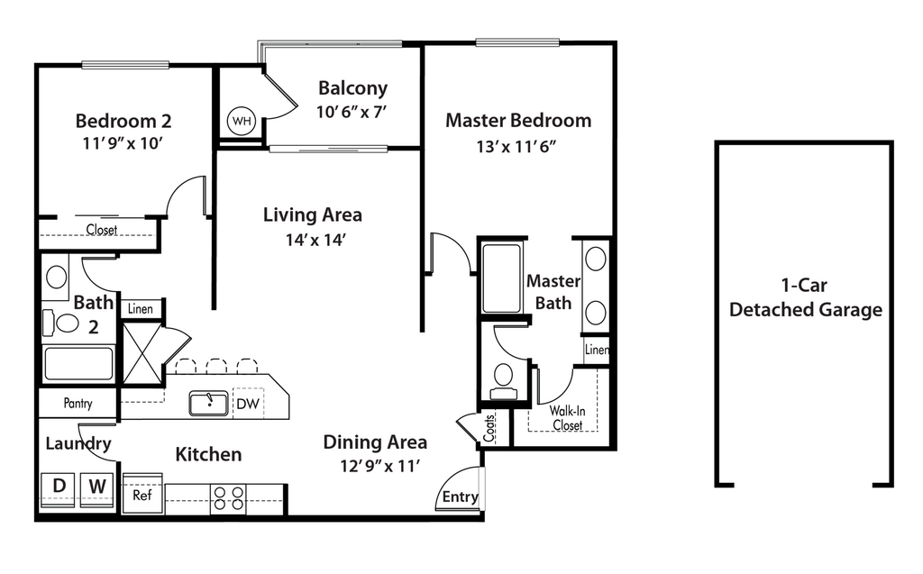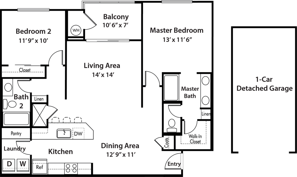 1 Bed, 1 Bath, 767 sq ftPlus FeesAvailable NowLargest 1 BedroomThis is the largest 1 Bedroom at this PropertyModel Gallery