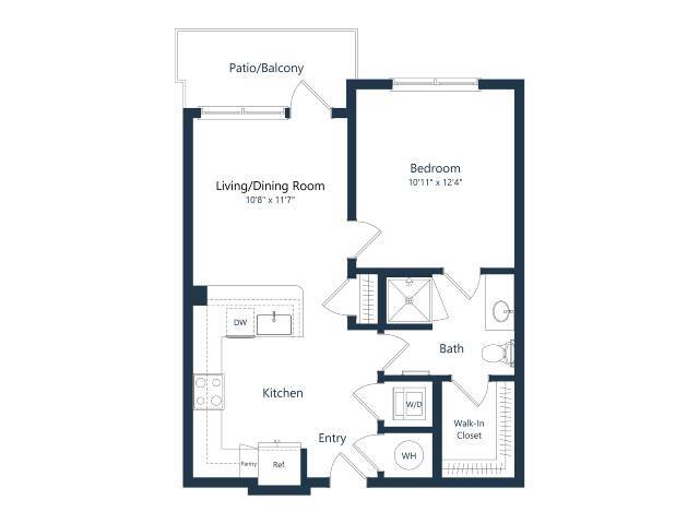 Apartment Model: A1From $1,5351 Bedroom, 1 Bath, 633 sq ftAvailable NowFloor plans are artist's rendering. All dimensions are approximate. Actual product and specifications may vary in dimension or detail. Not all features are available in every rental home. Prices and availability are subject to change. Base rent is based on monthly frequency. Additional fees may apply, such as but not limited to package delivery, trash, water, amenities, etc. Deposits vary. Please see a representative for details.