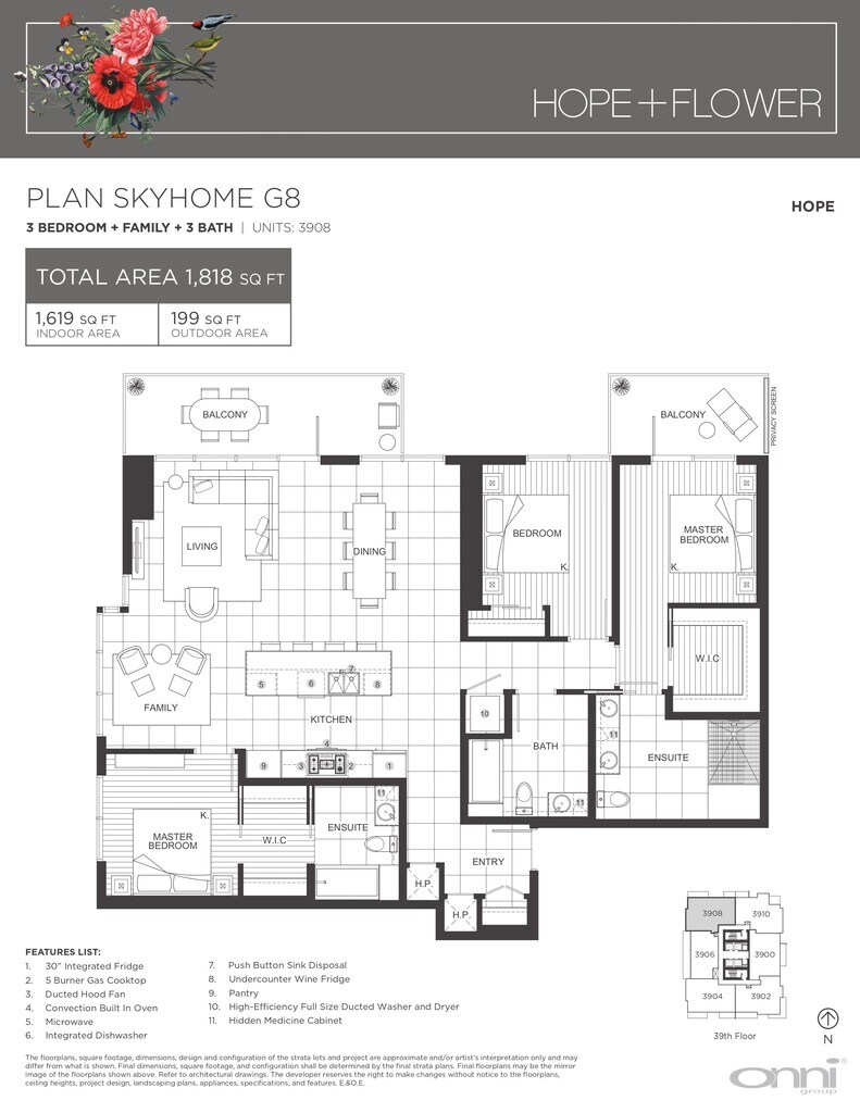 Hope + Flower offers Studio to 3 Bedroom apartments starting from $2,356 and having 507–3,186 sq ft. Here is the current pricing and availability: