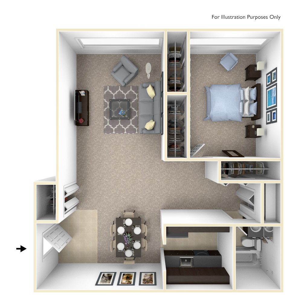1 Bed, 1 Bath, 729 sq ftModel Gallery