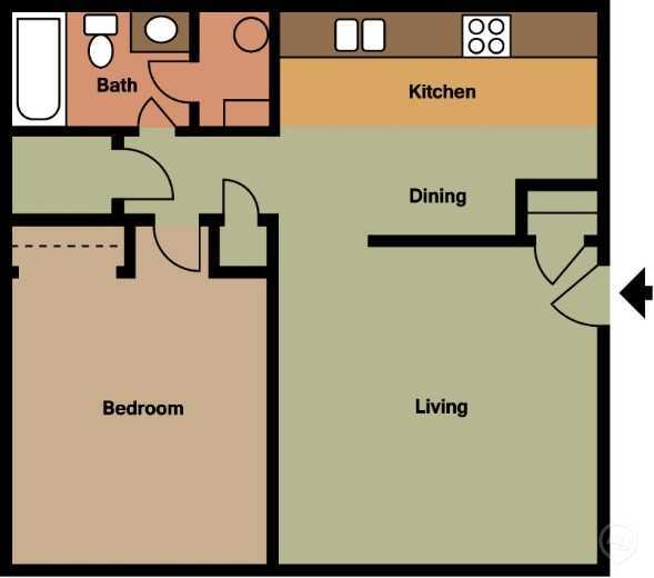 Apartment Model: One Bedroom One Bath Garden$9951 Bedroom, 1 Bath, 630 sq ftAvailable Now![]()