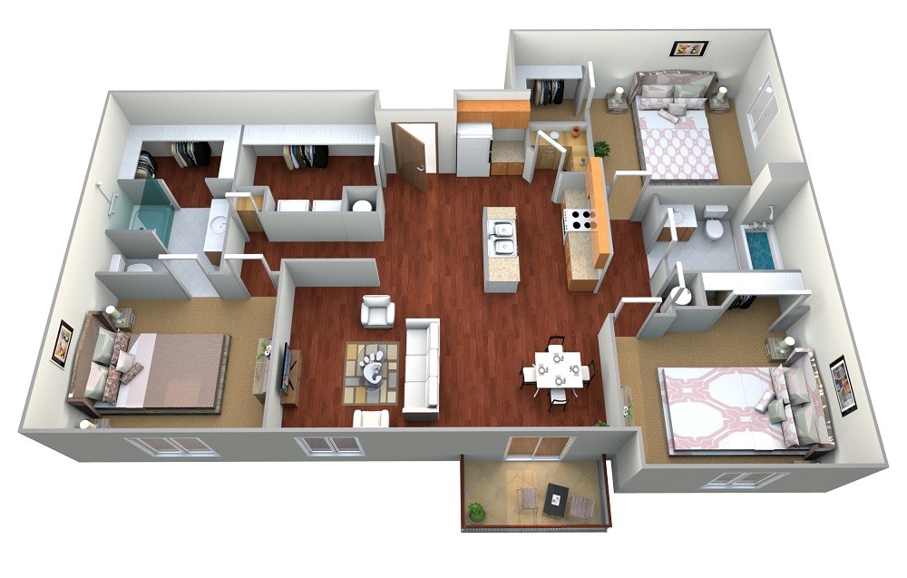 Apartment Model: 3 Bedroom, 2 Bath$1,5203 Bedroom, 2 Bath, 1376 sq ftAvailable December 1, 2025![]()