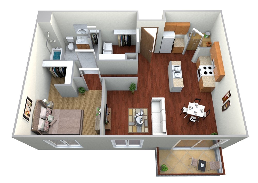 1 Bed, 1 Bath, 895 sq ftModel Gallery