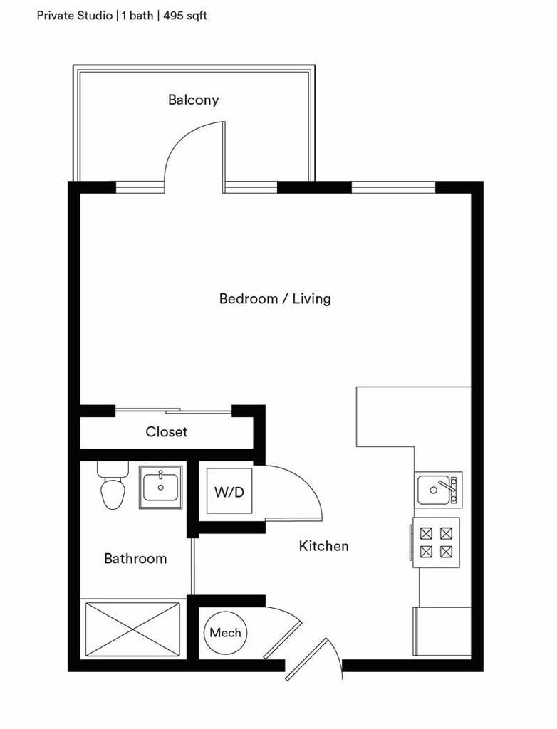 Studio, 1 Bath, 495 sq ftAvailable NowModel Gallery