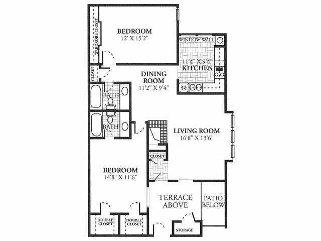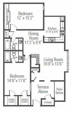 2 Beds, 2 Baths, 1194 sq ftAvailable NowLargest 2 BedroomThis is the largest 2 Bedroom at this PropertyModel Gallery