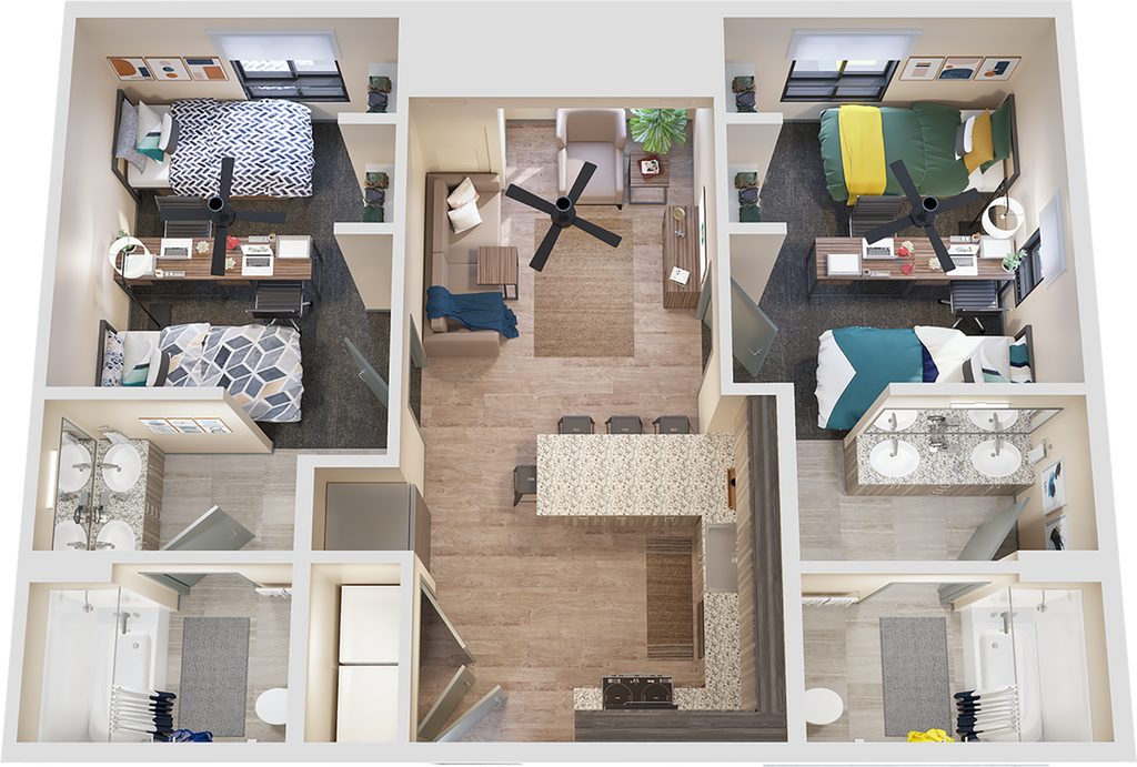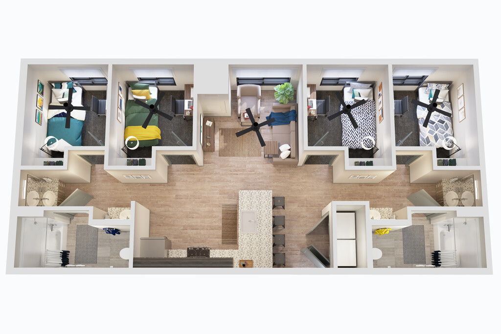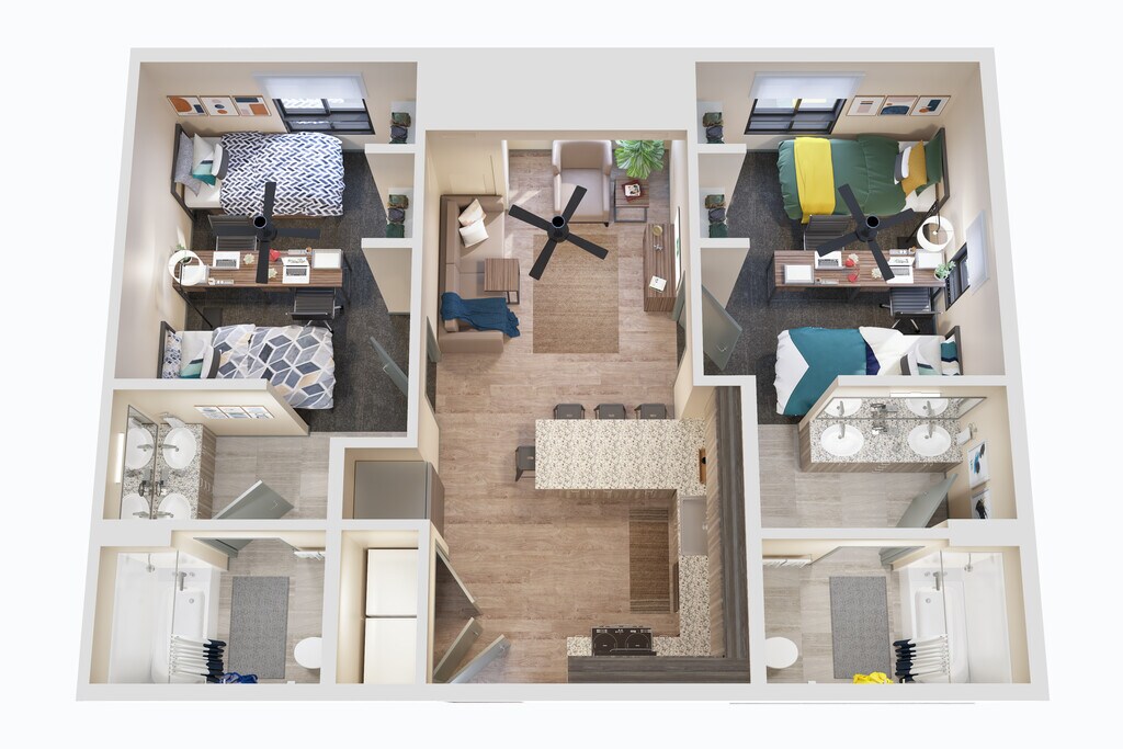 4X2 - Floorplan 2 Apartment Unit: PrivateApartment Model: 4X2$1,2304 Bedroom, 2 Bath, 1080 sq ftAvailable Now
