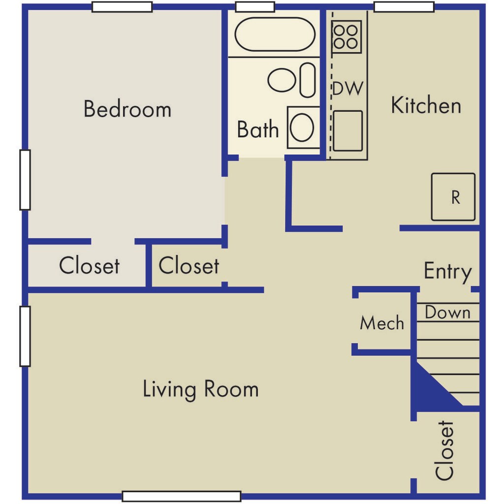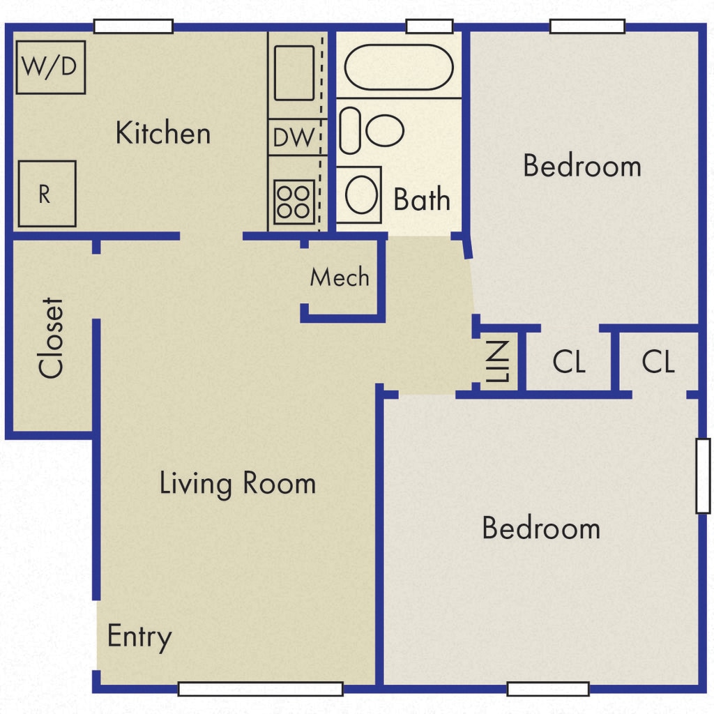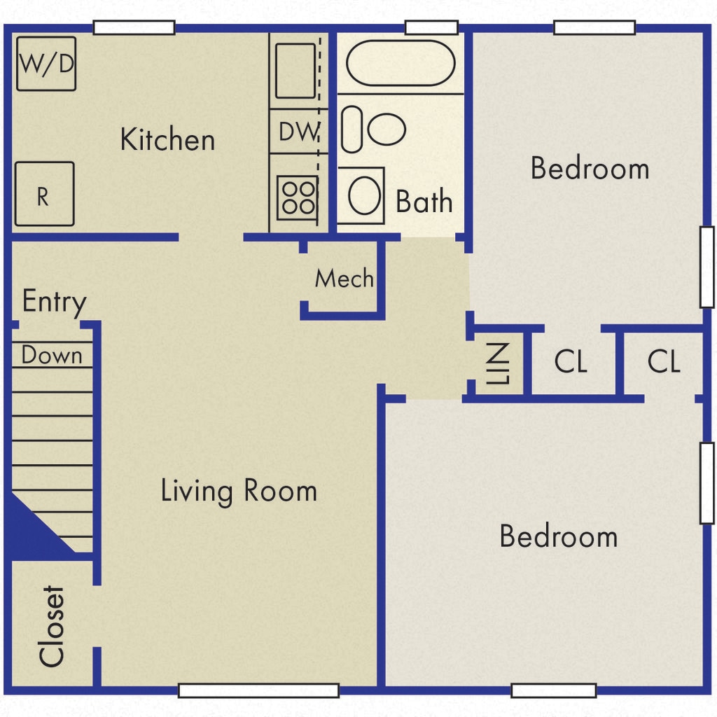 2 Beds, 1 Bath, 735 sq ftAvailable NowModel Gallery