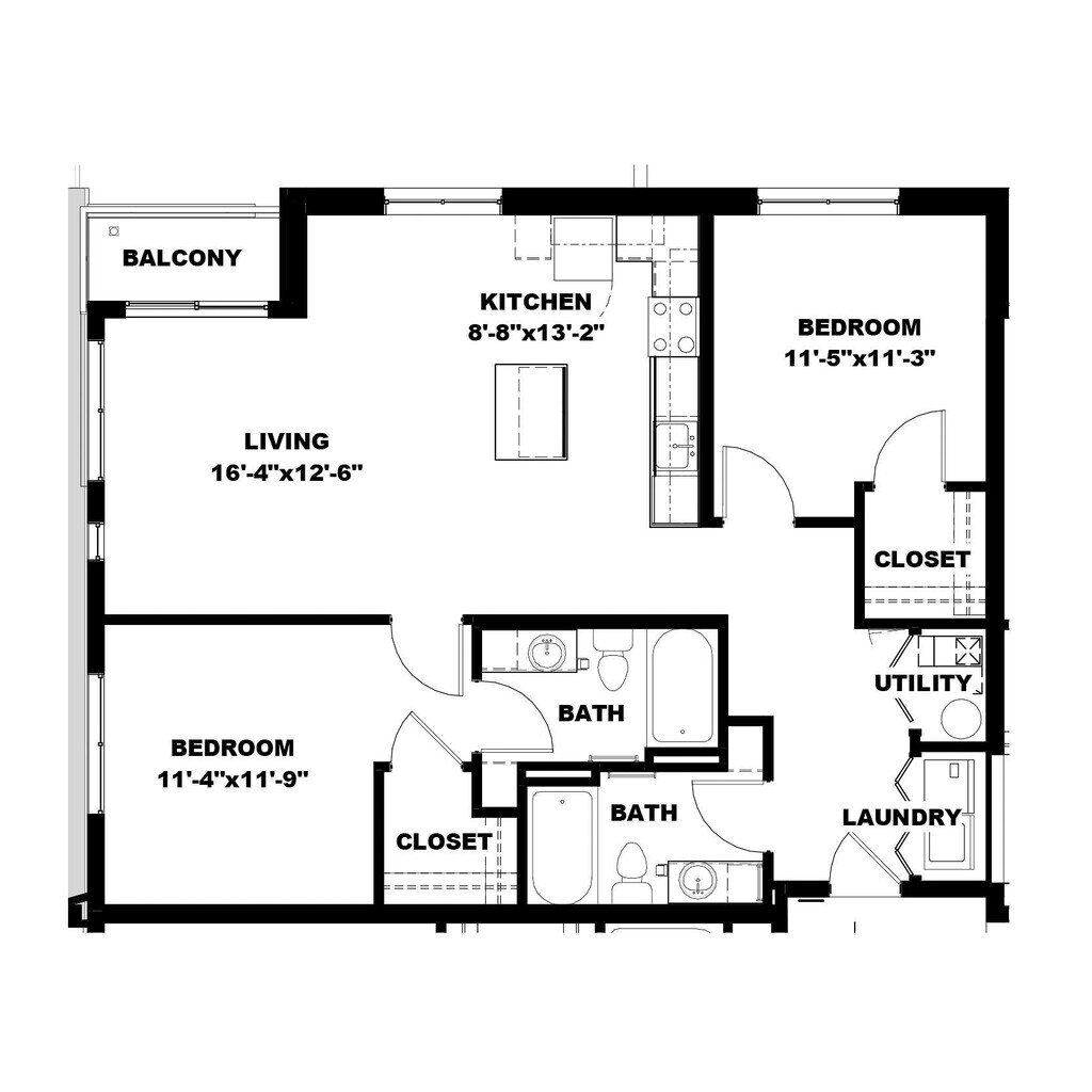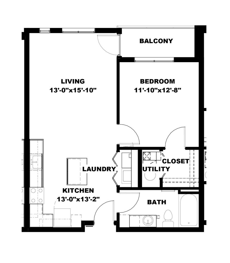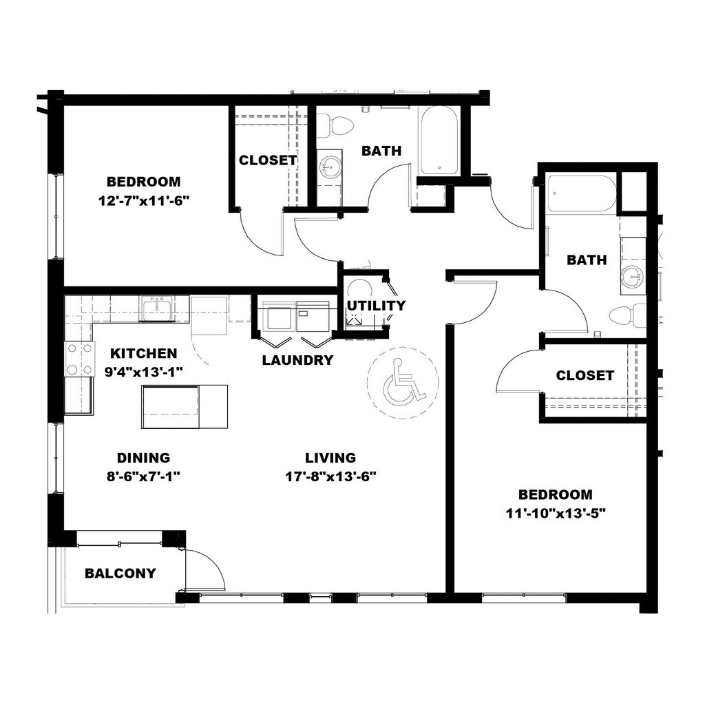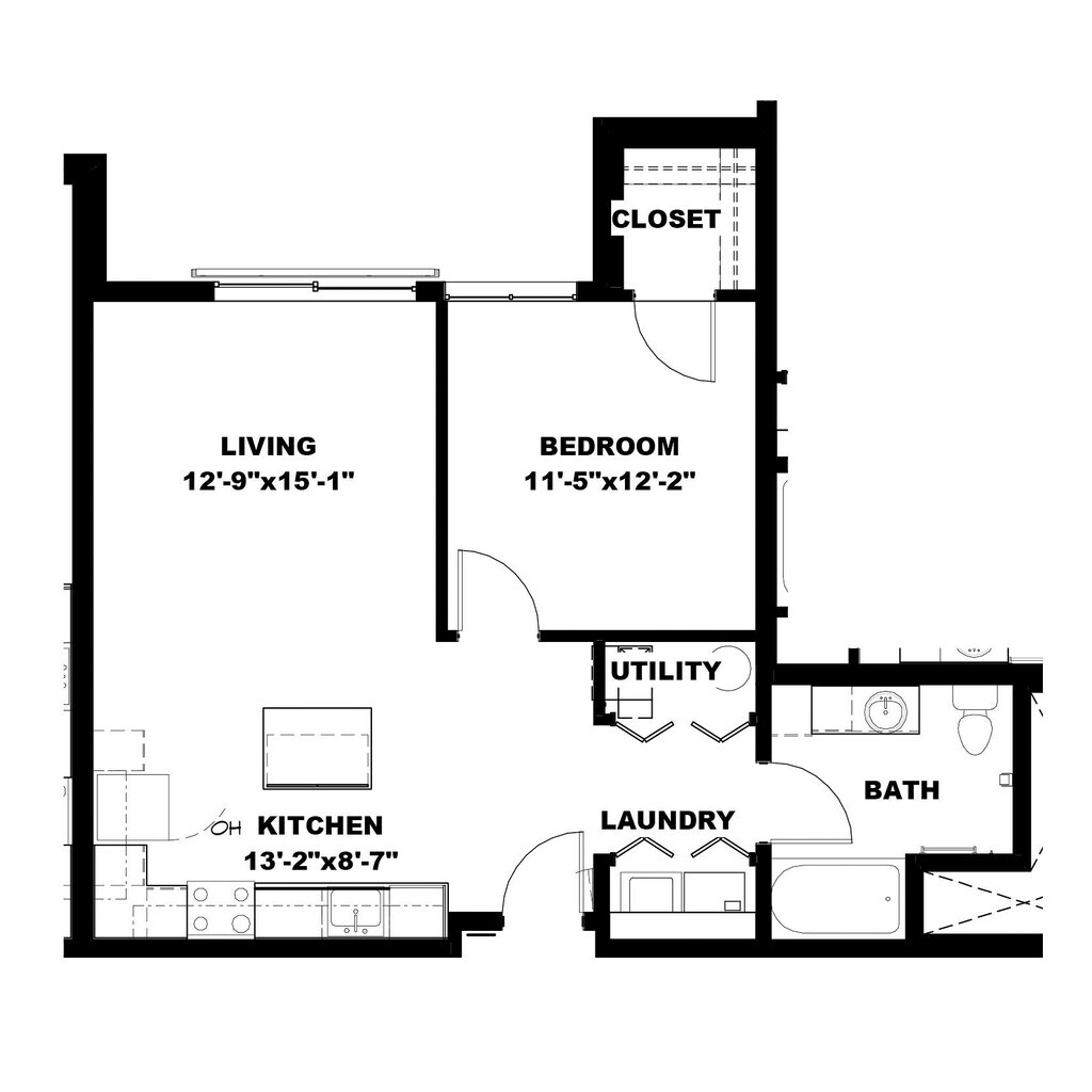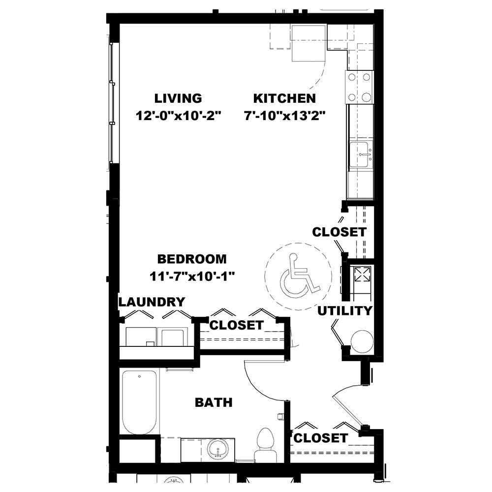 One Bedroom A1 - Floorplan 8 One Bedroom A1 (ADA)