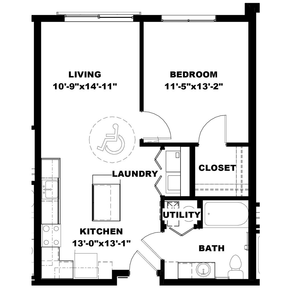 One Bedroom A1 (ADA) - Floorplan 1 One Bedroom A3