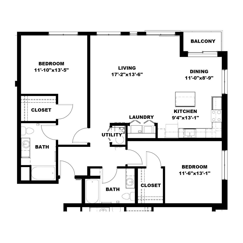 Apartment Model: One Bedroom A1 (ADA)1 Bedroom, 1 Bath, 627 sq ftUnavailable![]()