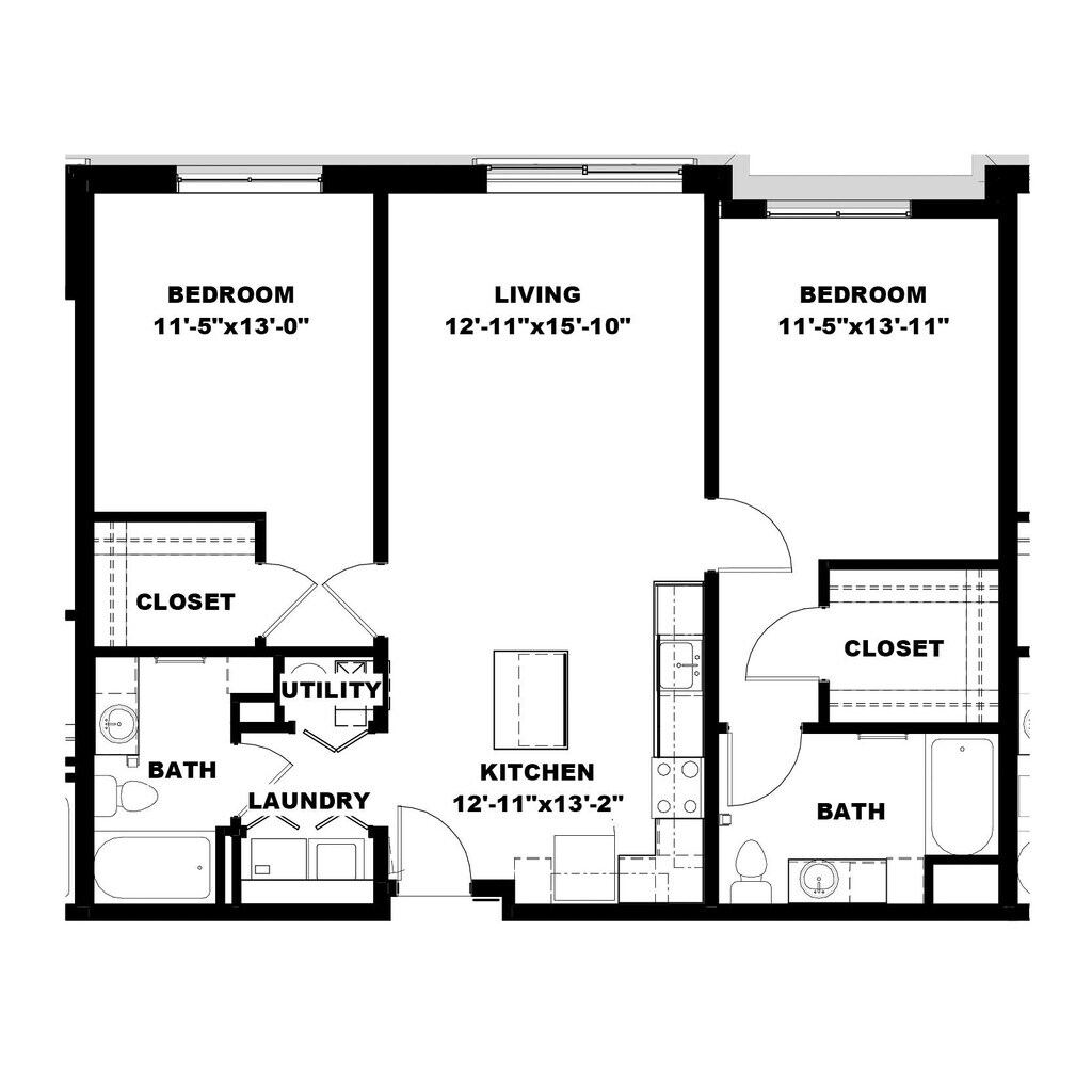Studio E2 (ADA) - Floorplan 1 ![]()