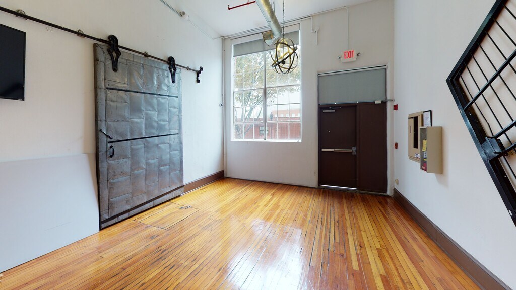 - Large warehouse-style windows