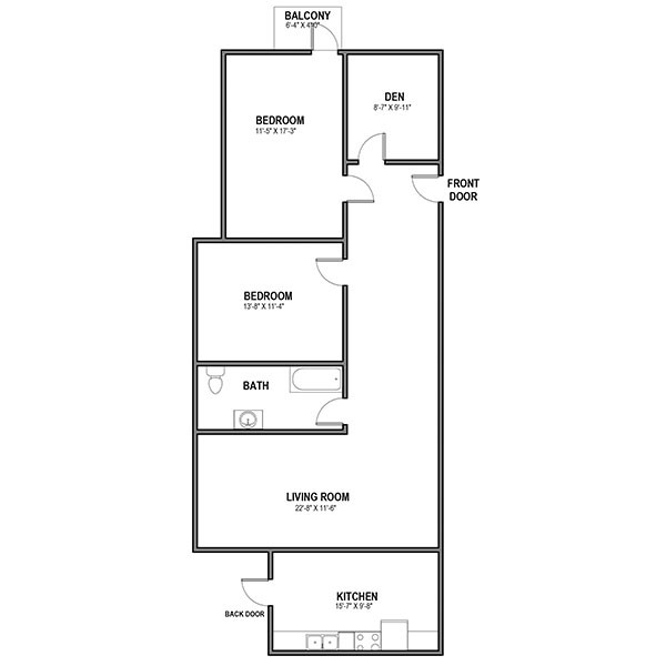 1 BR 1 Bath 5754 - 7 - Floorplan 1 1 BR 1 Bath - Den 5758 - 7