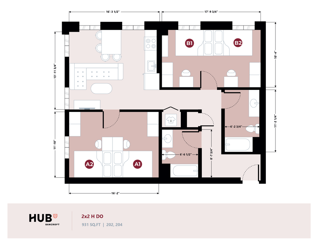 2x2 H - Floorplan 1 Apartment Unit: Standard, Duo-SharedApartment Model: 2x2 H$1,8992 Bedroom, 2 Bath, 931 sq ftAvailable August 23, 2026Apartment Unit: Standard, Duo-Shared, Window WallApartment Model: 2x2 H$1,9392 Bedroom, 2 Bath, 931 sq ftAvailable August 23, 20262x2 I