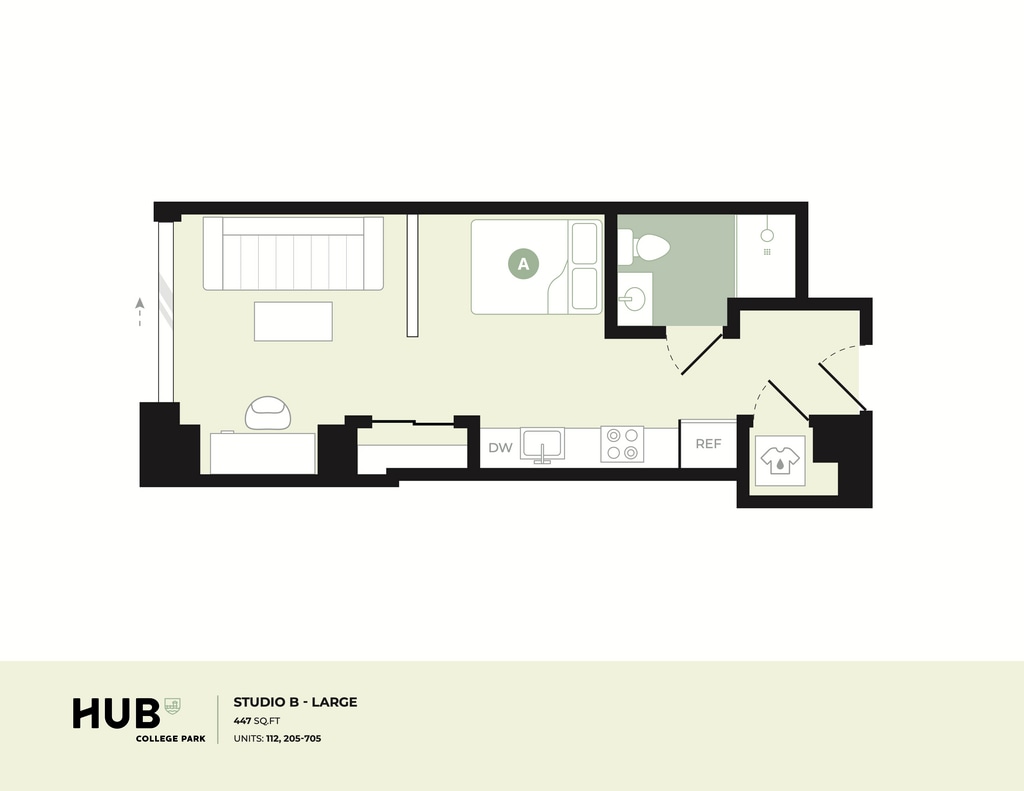 Hub College Park offers Studio to 5 Bedroom apartments starting from $1,160 and having 369–1,982 sq ft. Here is the current pricing and availability: