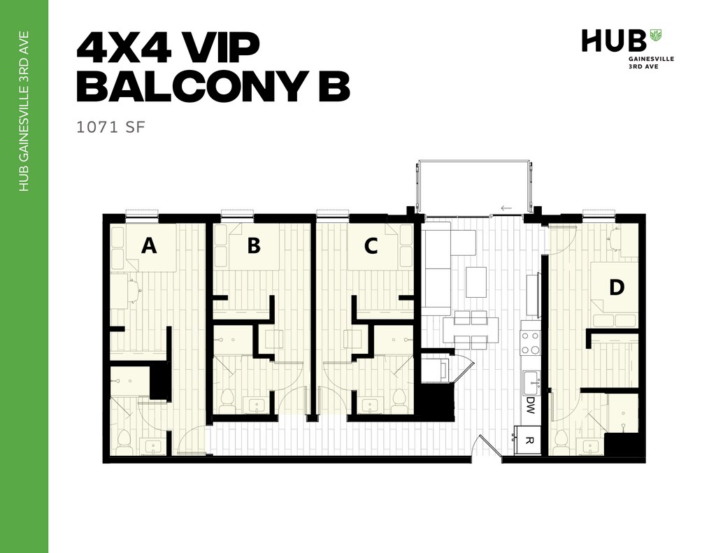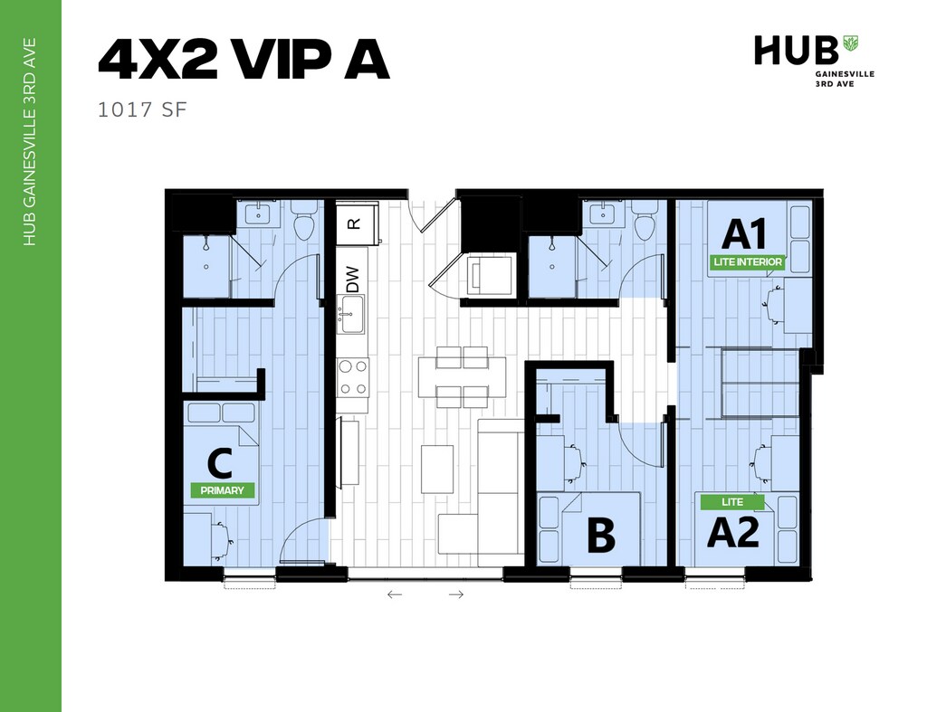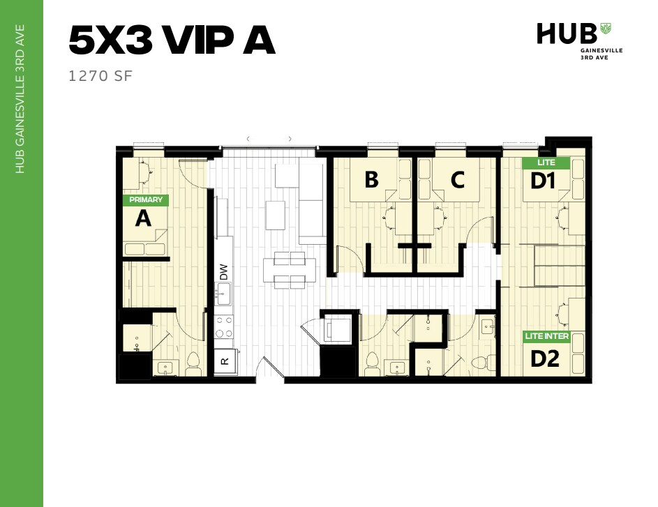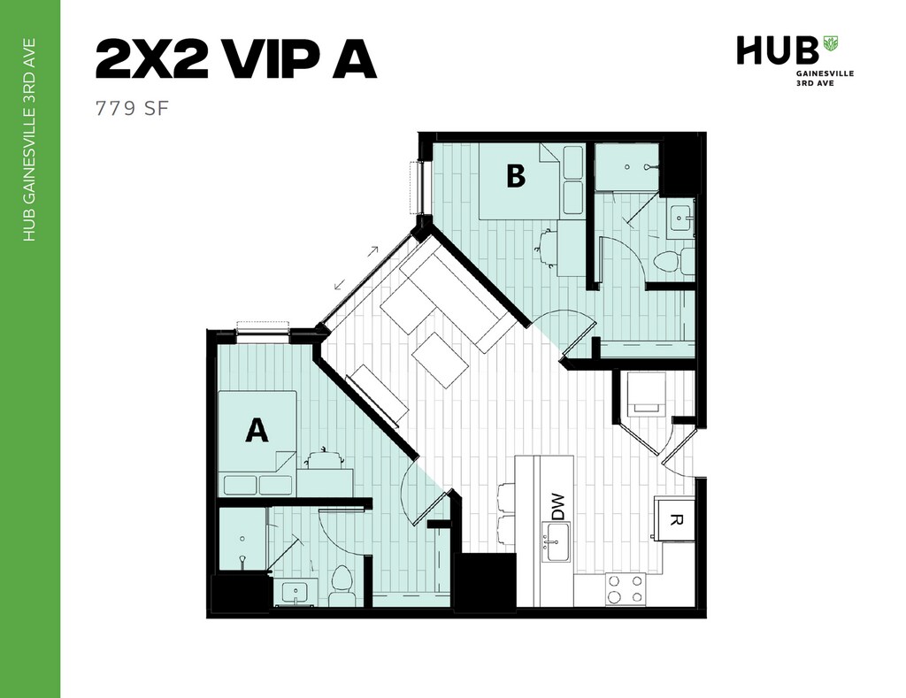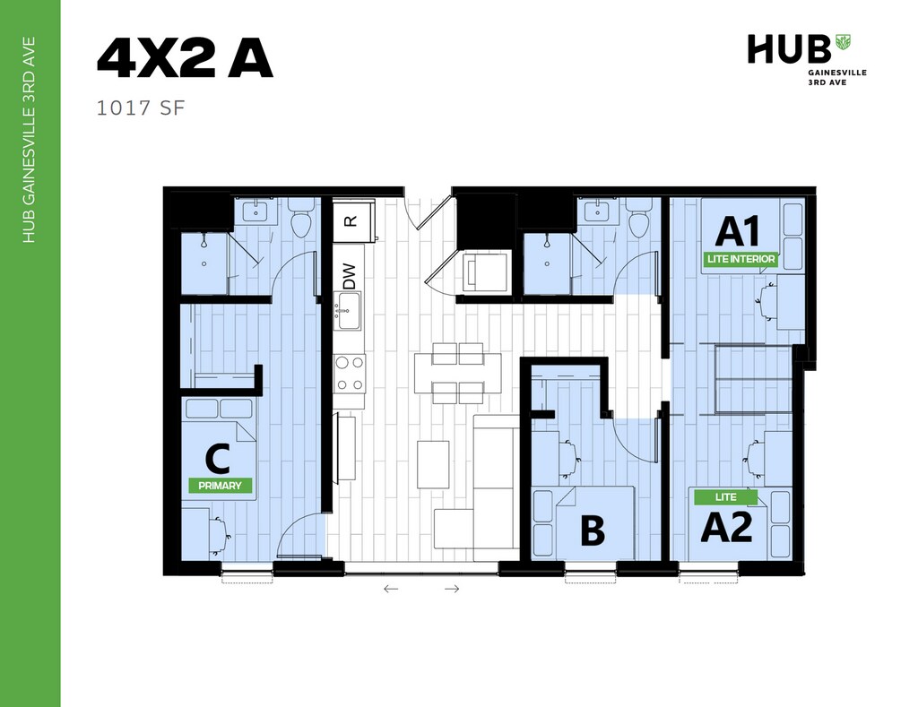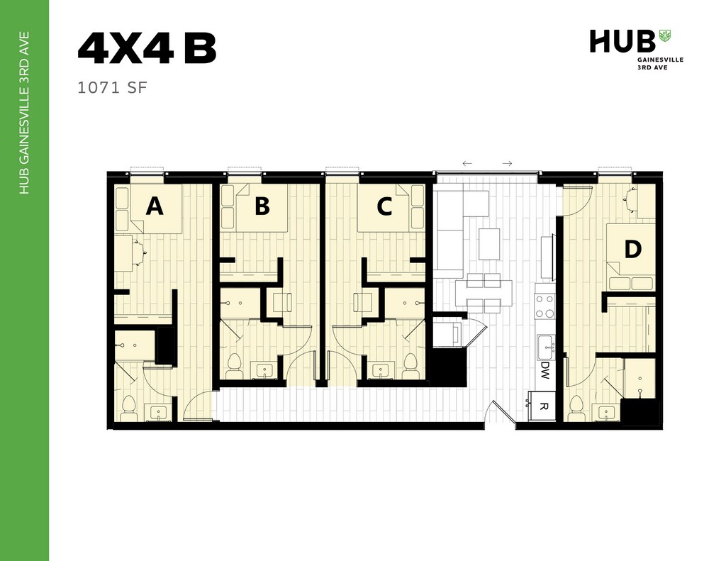 Hub Gainesville 3rd Ave offers Studio to 7 Bedroom apartments starting from $764 and having 338–2,934 sq ft. Here is the current pricing and availability: