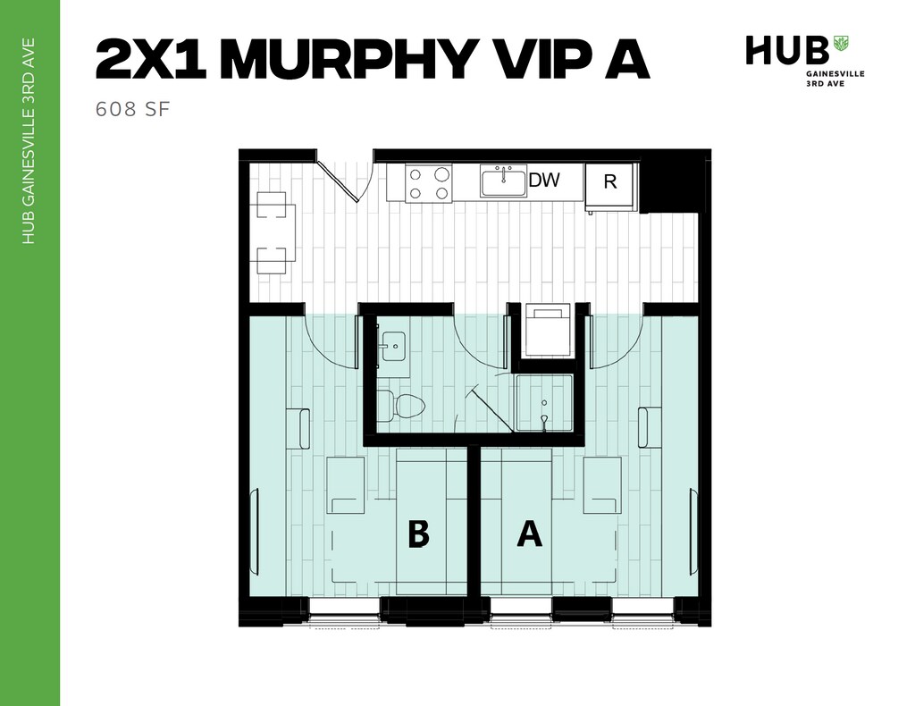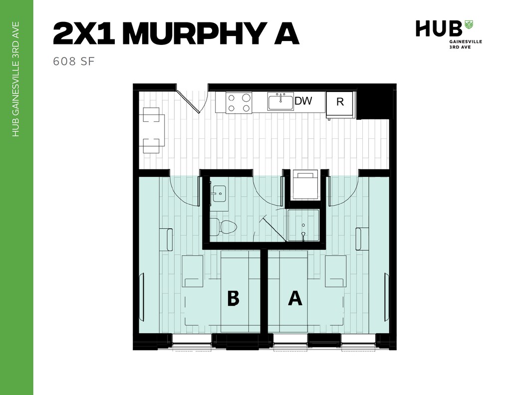 2x1 Murphy - Floorplan 1 Apartment Unit: PrivateApartment Model: 2x1 Murphy$1,1202 Bedroom, 1 Bath, 608 sq ftAvailable August 15, 20262x1 Murphy VIP