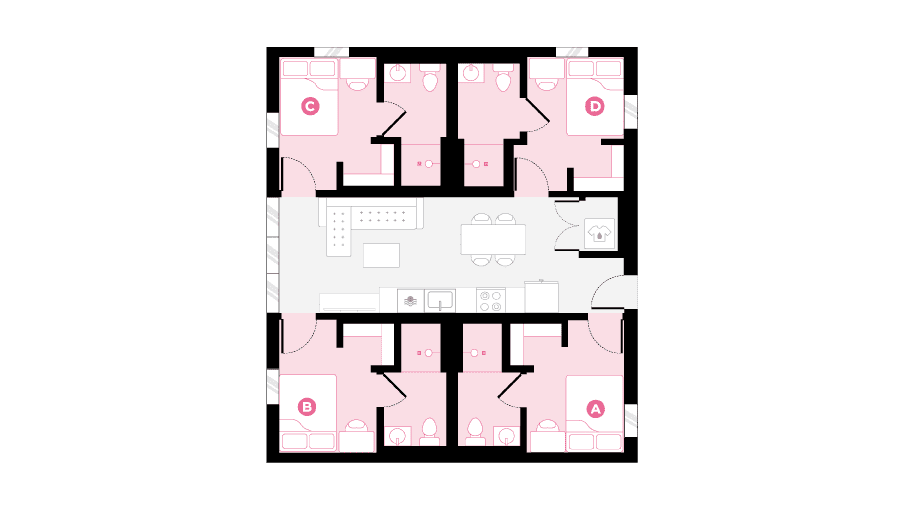 4x4 A - Floorplan 1 Apartment Unit: MansionApartment Model: 4x4 A4 Bedroom, 4 Bath, 1093-1115 sq ftAvailable August 19, 2026Apartment Unit: StandardApartment Model: 4x4 A4 Bedroom, 4 Bath, 1093-1115 sq ftAvailable August 19, 2026Apartment Unit: StandardApartment Model: 4x4 A4 Bedroom, 4 Bath, 1093-1115 sq ftAvailable August 19, 20265 Bedrooms