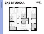 3x3 Studio - Floorplan 1 Apartment Unit: PrivateApartment Model: 3x3 Studio3 Bedroom, 3 Bath, 1063 sq ftAvailable August 19, 20263x3 Studio VIP